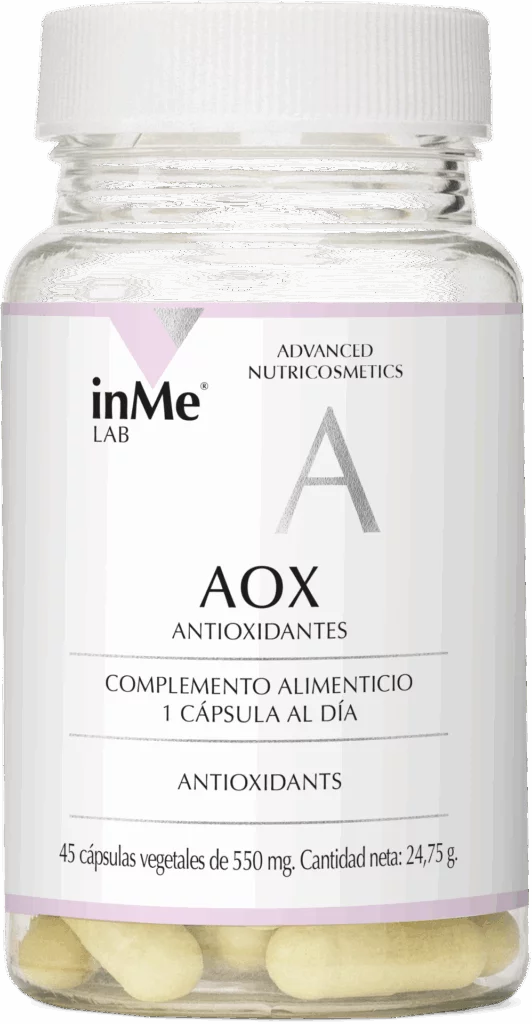 - inMe AOX aportará potentes antioxidantes a la piel, previene el estrés oxidativo y el envejecimiento prematuro.